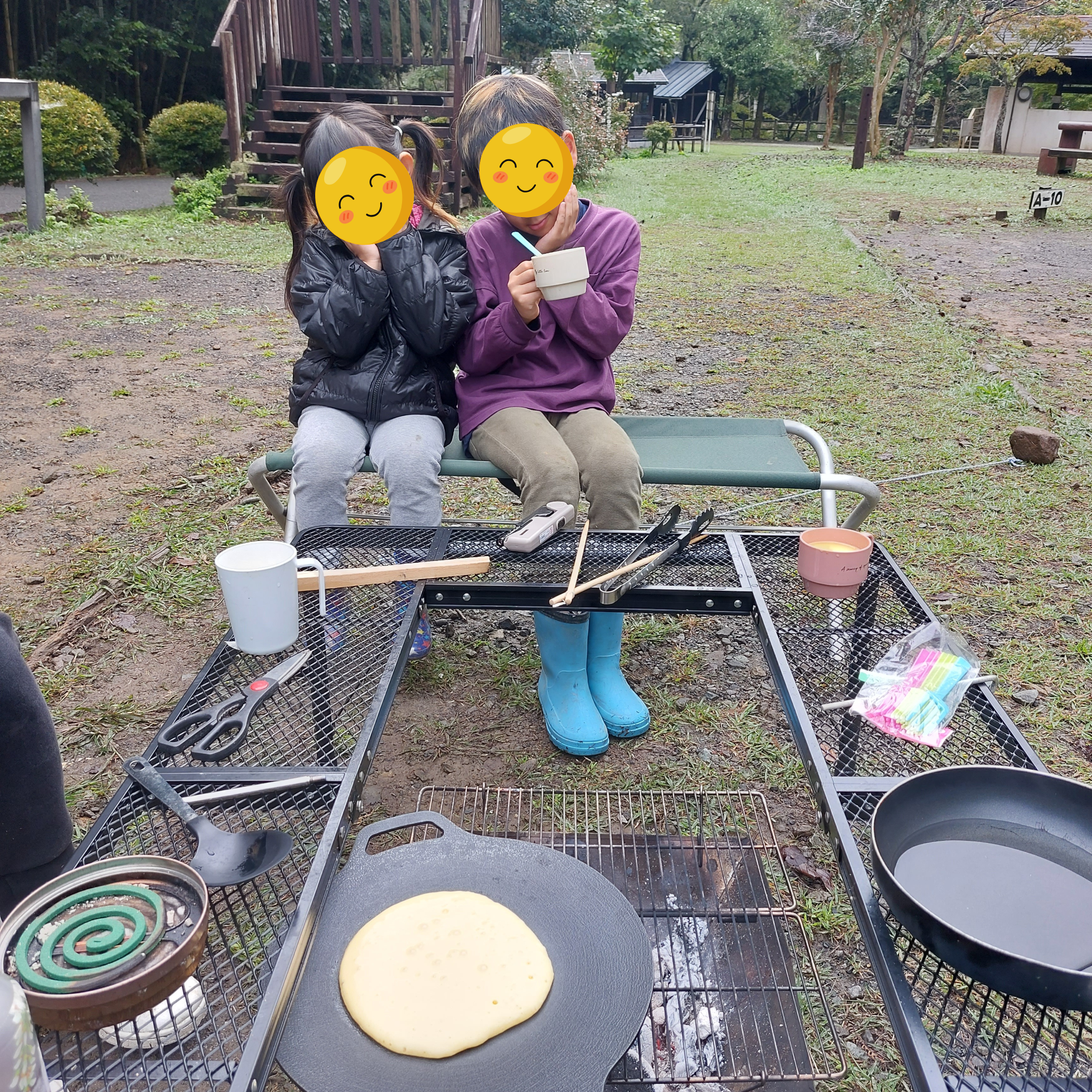焼きたてホットケーキを家族で食べる、これぞキャンプの朝☕✨